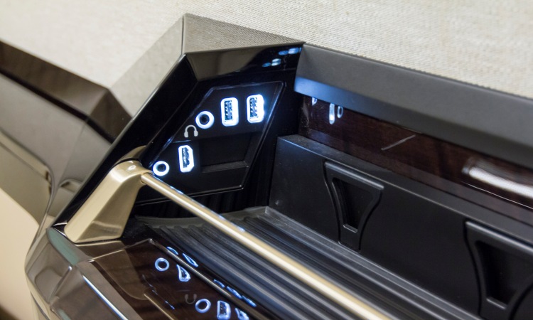 The Sovereign's Advanced Clarity Cabin Management System features user-friendly touch-screen controllers at passenger seats. You will never be disconnected with our interactive moving map capability, integration of smartphones, tablets, and MP3 players, along with an included airborne Internet system.