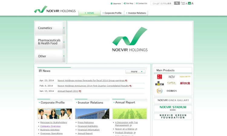 NOEVIR Hodlings is NOEVIR's investing section of our group. NOEVIR is well known as it's well developed cosmetics product and successfull research and development in Japan.